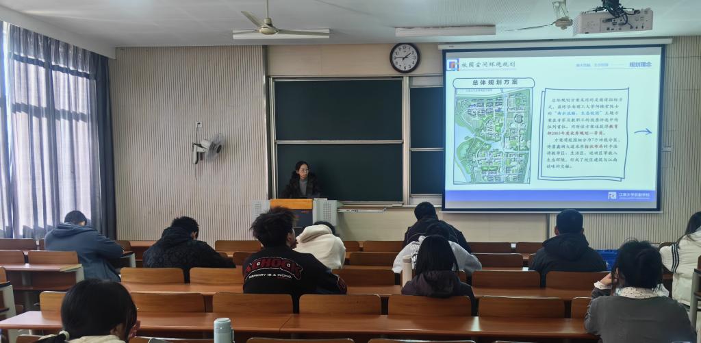 12月3日下午,基建處姜沁瑤老師在第一教學樓1B209教室,講授后勤學?!熬G色發展課堂”系列課...